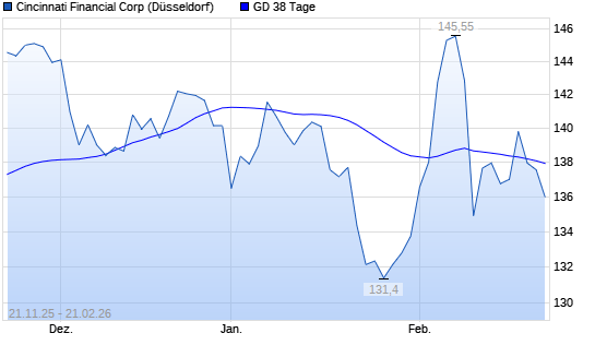 Mit dem Rücksetzer auf 137,90 EUR hat die Cincinnati Financial-Aktie am 20.02.2026 die 38-Tage-Linie nach unten gekreuzt.