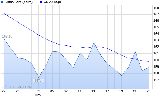 Mit dem Rücksetzer auf 156,80 EUR hat die Cintas-Aktie am 25.11.2025 die 20-Tage-Linie nach unten gekreuzt.