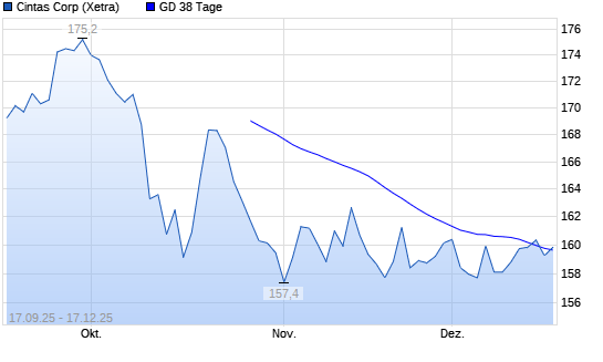 Mit dem Rücksetzer auf 159,20 EUR hat die Cintas-Aktie am 16.12.2025 die 38-Tage-Linie nach unten gekreuzt.