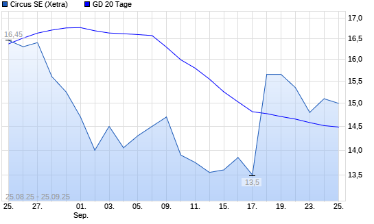 Mit dem Rücksetzer auf 14,45 EUR hat die Circus-Aktie am 24.09.2025 die 20-Tage-Linie nach unten gekreuzt.