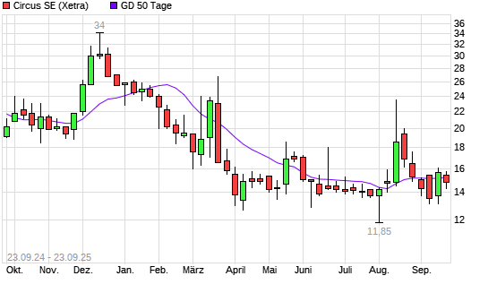Mit dem Rücksetzer auf 15,05 EUR hat die Circus-Aktie am 22.09.2025 die 50-Tage-Linie nach unten gekreuzt.