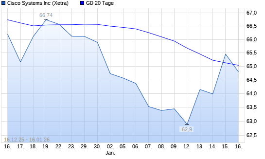 Mit dem Anstieg auf 65,40 EUR hat die Cisco-Aktie am 15.01.2026 die 20-Tage-Linie nach oben gekreuzt.