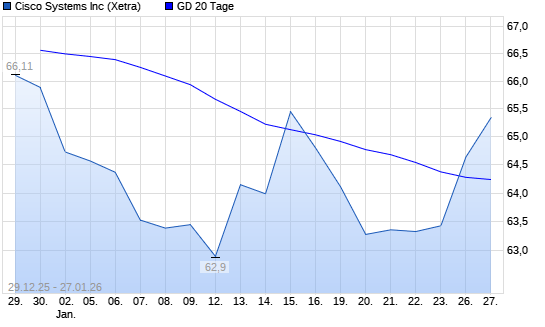 Mit dem Anstieg auf 65,32 EUR hat die Cisco-Aktie am 26.01.2026 die 20-Tage-Linie nach oben gekreuzt.