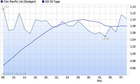 Mit dem Anstieg auf 1,11 EUR hat die Citic Pacific-Aktie am 07.11.2024 die 20-Tage-Linie nach oben gekreuzt.