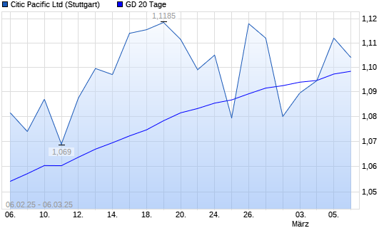 Mit dem Anstieg auf 1,15 EUR hat die Citic Pacific-Aktie am 05.03.2025 die 20-Tage-Linie nach oben gekreuzt.