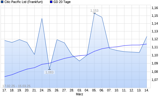 Mit dem Anstieg auf 1,12 EUR hat die Citic Pacific-Aktie am 14.03.2025 die 20-Tage-Linie nach oben gekreuzt.