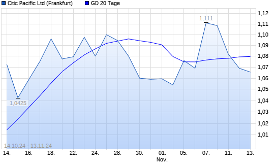 Mit dem Rücksetzer auf 1,07 EUR hat die Citic Pacific-Aktie am 12.11.2024 die 20-Tage-Linie nach unten gekreuzt.