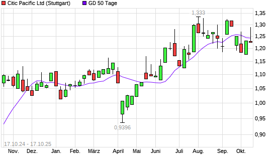 Mit dem Rücksetzer auf 1,24 EUR hat die Citic Pacific-Aktie am 16.10.2025 die 50-Tage-Linie nach unten gekreuzt.