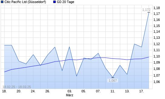 Mit dem Rücksetzer auf 1,11 EUR hat die Citic Pacific-Aktie am 17.03.2025 die 20-Tage-Linie nach unten gekreuzt.Die Citic Pacific-Aktie befindet sich seit dem 24.09.2024 im langfristigen ...weiterlesen