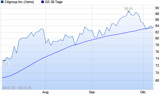 Mit dem Rücksetzer auf 83,19 EUR hat die Citigroup-Aktie am 07.10.2025 die 38-Tage-Linie nach unten gekreuzt.