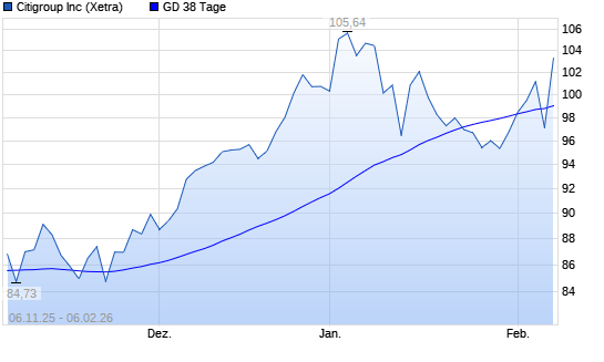 Mit dem Rücksetzer auf 99,16 EUR hat die Citigroup-Aktie am 05.02.2026 die 38-Tage-Linie nach unten gekreuzt.