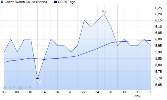 Mit dem Anstieg auf 6,00 EUR hat die Citizen-Aktie am 04.11.2025 die 20-Tage-Linie nach oben gekreuzt.