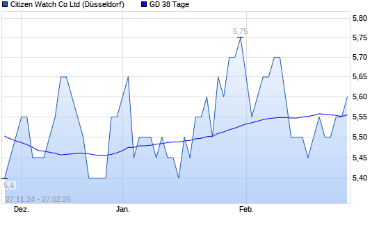 Mit dem Anstieg auf 5,65 EUR hat die Citizen-Aktie am 26.02.2025 die 38-Tage-Linie nach oben gekreuzt.