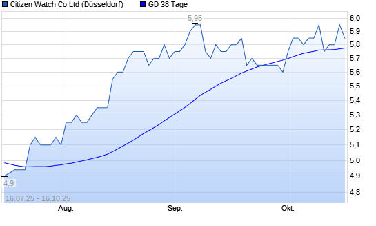 Mit dem Anstieg auf 6,00 EUR hat die Citizen-Aktie am 15.10.2025 die 38-Tage-Linie nach oben gekreuzt.