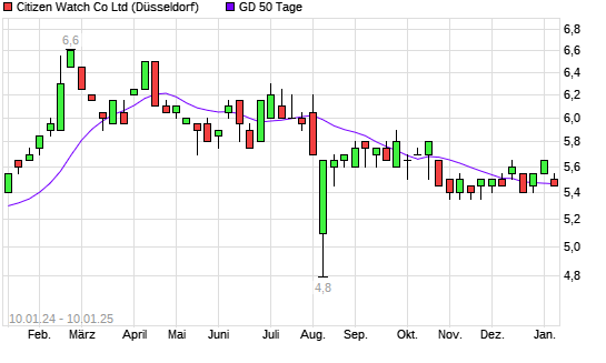 Mit dem Anstieg auf 5,60 EUR hat die Citizen-Aktie am 09.01.2025 die 50-Tage-Linie nach oben gekreuzt.