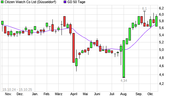Mit dem Anstieg auf 5,80 EUR hat die Citizen-Aktie am 14.10.2025 die 50-Tage-Linie nach oben gekreuzt.