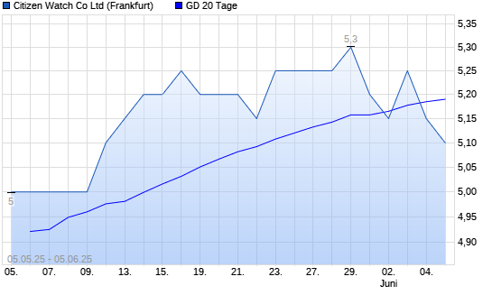 Mit dem Rücksetzer auf 5,15 EUR hat die Citizen-Aktie am 04.06.2025 die 20-Tage-Linie nach unten gekreuzt.