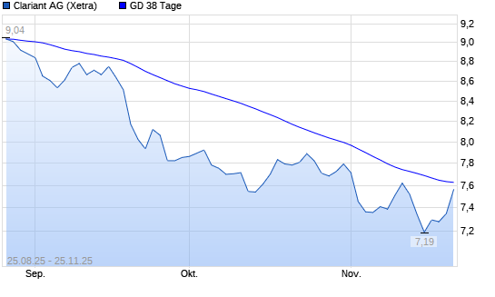 Mit dem Anstieg auf 7,59 EUR hat die Clariant-Aktie am 24.11.2025 die 38-Tage-Linie nach oben gekreuzt.