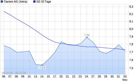 Mit dem Rücksetzer auf 7,70 EUR hat die Clariant-Aktie am 03.11.2025 die 20-Tage-Linie nach unten gekreuzt.