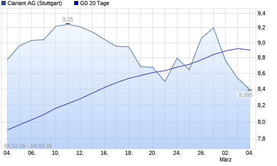 Mit dem Rücksetzer auf 8,57 EUR hat die Clariant-Aktie am 03.03.2026 die 20-Tage-Linie nach unten gekreuzt.Die Clariant-Aktie befindet sich seit dem 04.02.2026 im ...weiterlesen