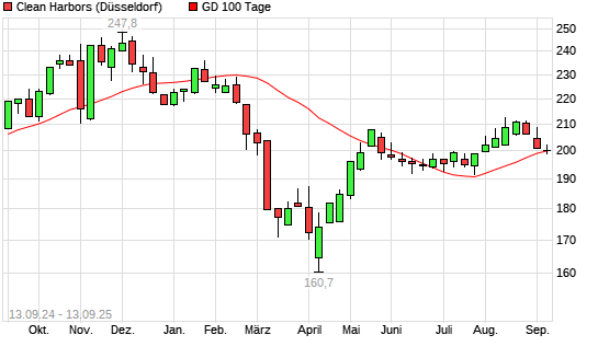 Mit dem Anstieg auf 202,20 EUR hat die Clean Harbors-Aktie am 12.09.2025 die 100-Tage-Linie nach oben gekreuzt.