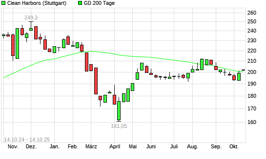 Mit dem Anstieg auf 200,20 EUR hat die Clean Harbors-Aktie am 13.10.2025 die 200-Tage-Linie nach oben gekreuzt.