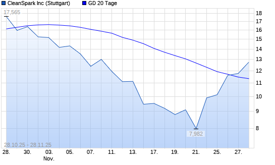 Mit dem Anstieg auf 11,77 EUR hat die Cleanspark-Aktie am 27.11.2025 die 20-Tage-Linie nach oben gekreuzt.