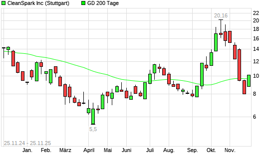 Mit dem Anstieg auf 9,91 EUR hat die Cleanspark-Aktie am 24.11.2025 die 200-Tage-Linie nach oben gekreuzt.