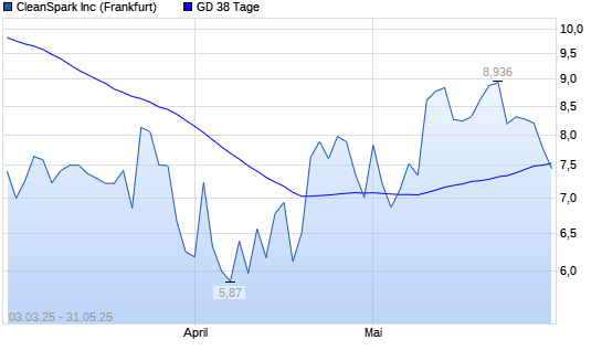 Mit dem Rücksetzer auf 7,59 EUR hat die Cleanspark-Aktie am 30.05.2025 die 38-Tage-Linie nach unten gekreuzt.