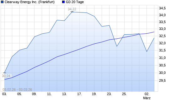Mit dem Rücksetzer auf 31,42 EUR hat die Clearway Energy C-Aktie am 02.03.2026 die 20-Tage-Linie nach unten gekreuzt.