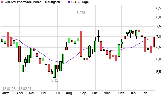 Mit dem Rücksetzer auf 6,80 EUR hat die Clinuvel Pharmaceuticals-Aktie am 17.02.2026 die 50-Tage-Linie nach unten gekreuzt.