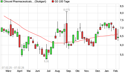 Mit dem Rücksetzer auf 6,60 EUR hat die Clinuvel Pharmaceuticals-Aktie am 06.02.2026 die 100-Tage-Linie nach unten gekreuzt.Die Clinuvel Pharmaceuticals-Aktie befindet sich seit ...weiterlesen