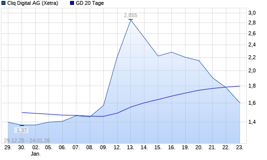 Mit dem Rücksetzer auf 1,60 EUR hat die Cliq Digital-Aktie am 23.01.2026 die 20-Tage-Linie nach unten gekreuzt.