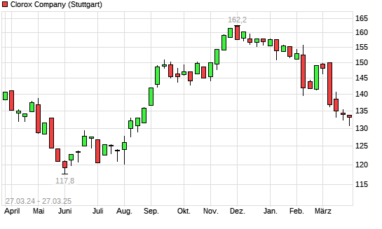 Mit dem Rücksetzer auf 130,80 EUR hat die Clorox-Aktie (ISIN US1890541097) am 26.03.2025 ein neues 6-Monats-Tief erreicht und damit den Kurs vom 25.03.2025 eingestellt.