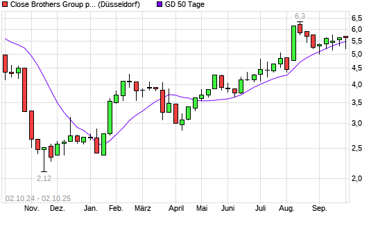 Mit dem Anstieg auf 5,60 EUR hat die Close Brothers Group-Aktie am 01.10.2025 die 50-Tage-Linie nach oben gekreuzt.