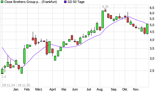 Mit dem Anstieg auf 5,10 EUR hat die Close Brothers Group-Aktie am 28.11.2025 die 50-Tage-Linie nach oben gekreuzt.