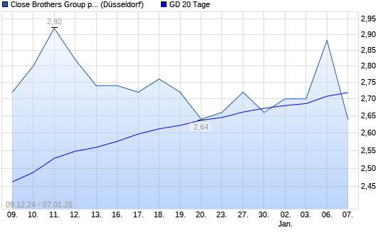 Mit dem Rücksetzer auf 2,72 EUR hat die Close Brothers Group-Aktie am 06.01.2025 die 20-Tage-Linie nach unten gekreuzt.
