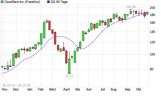 Mit dem Anstieg auf 187,98 EUR hat die Cloudflare A-Aktie am 24.10.2025 die 50-Tage-Linie nach oben gekreuzt.