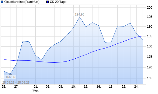 Mit dem Rücksetzer auf 185,00 EUR hat die Cloudflare A-Aktie am 24.09.2025 die 20-Tage-Linie nach unten gekreuzt.