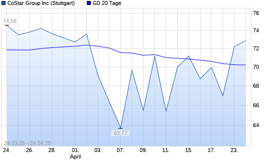 Mit dem Anstieg auf 70,03 EUR hat die CoStar-Aktie am 23.04.2025 die 20-Tage-Linie nach oben gekreuzt.