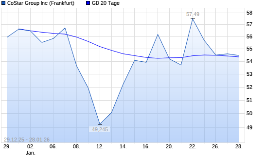 Mit dem Anstieg auf 54,61 EUR hat die CoStar-Aktie am 27.01.2026 die 20-Tage-Linie nach oben gekreuzt.