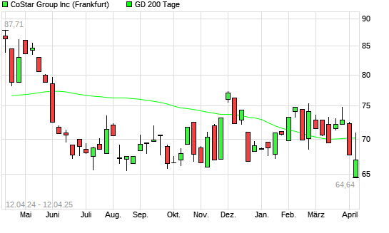 Mit dem Rücksetzer auf 66,95 EUR hat die CoStar-Aktie am 11.04.2025 die 200-Tage-Linie nach unten gekreuzt.