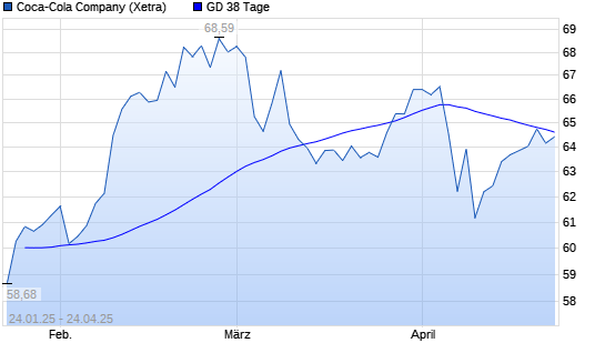 Mit dem Anstieg auf 64,79 EUR hat die Coca-Cola-Aktie am 23.04.2025 die 38-Tage-Linie nach oben gekreuzt.