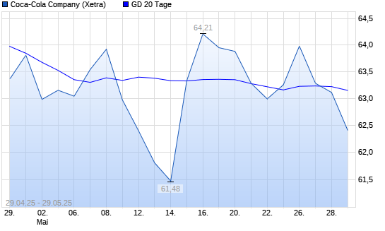 Mit dem Rücksetzer auf 63,07 EUR hat die Coca-Cola-Aktie am 28.05.2025 die 20-Tage-Linie nach unten gekreuzt.
