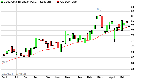 Mit dem Anstieg auf 78,20 EUR hat die Coca-Cola Europacific Partners-Aktie am 22.05.2025 die 100-Tage-Linie nach oben gekreuzt.