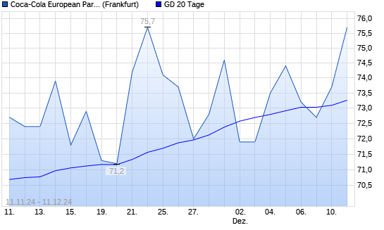 Mit dem Anstieg auf 73,70 EUR hat die Coca-Cola Europacific Partners-Aktie am 10.12.2024 die 20-Tage-Linie nach oben gekreuzt.
