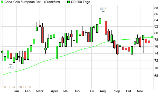 Mit dem Anstieg auf 78,70 EUR hat die Coca-Cola Europacific Partners-Aktie am 27.11.2025 die 200-Tage-Linie nach oben gekreuzt.