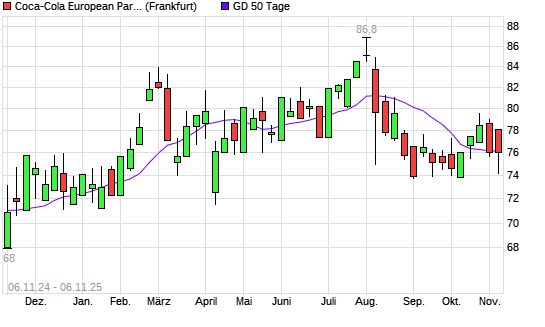 Mit dem Anstieg auf 77,00 EUR hat die Coca-Cola Europacific Partners-Aktie am 05.11.2025 die 50-Tage-Linie nach oben gekreuzt.