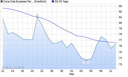 Mit dem Rücksetzer auf 75,60 EUR hat die Coca-Cola Europacific Partners-Aktie am 11.09.2025 die 20-Tage-Linie nach unten gekreuzt.