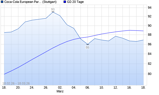 Mit dem Rücksetzer auf 86,40 EUR hat die Coca-Cola Europacific Partners-Aktie am 17.03.2026 die 20-Tage-Linie nach unten gekreuzt.